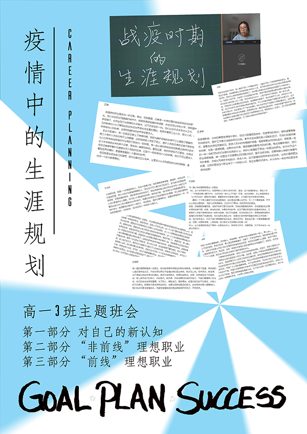配合学校德育工作,心理中心指导班主任开展以心理健康为主题的网络班会。初一年级班会主题为《从“心”发现爱,重新发现爱》,家长和学生共同参与,增进相互间的理解沟通。初二年级针对即将迎来的学业水平测试,在班会上探讨了“如何提升网课效率”的问题。高中年级结合疫情中的见闻,举办了《疫情中的生涯规划》主题班会。