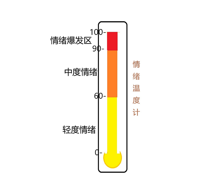通过亲子活动如“情绪温度计”(如图1),一起来标注出自己的消极情绪此时或之前处于哪个刻度?语气、表情、姿态是怎样的?当时自己是怎样想的?什么情况下“温度”会上升?自己可能会有怎样的感受?自己喜欢这种状态吗?如何避免“温度”上升?自己可以做些什么?你希望家人能帮助到你什么?这些都可以一起来探讨。