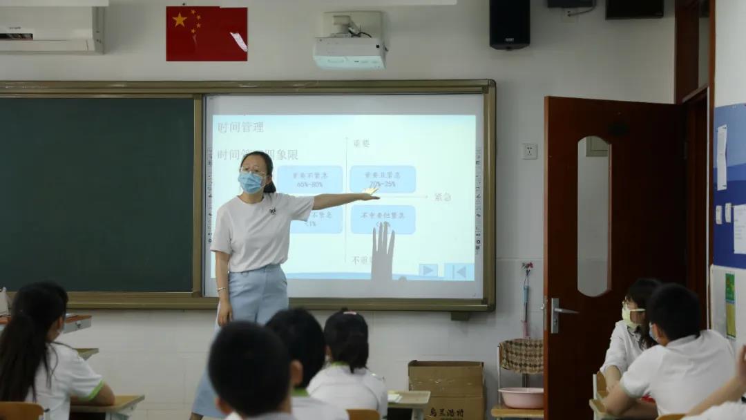 课上老师通过热身活动、回顾居家学习生活、展望返校复课、梦想之花等环节,帮助学生建立起从居家自主学习到返校复课集体学习的连接,解决学生适应不良的情况和矛盾的心情,为学生提供疏导紧张、焦虑情绪的渠道,教会学生科学规划、合理安排。