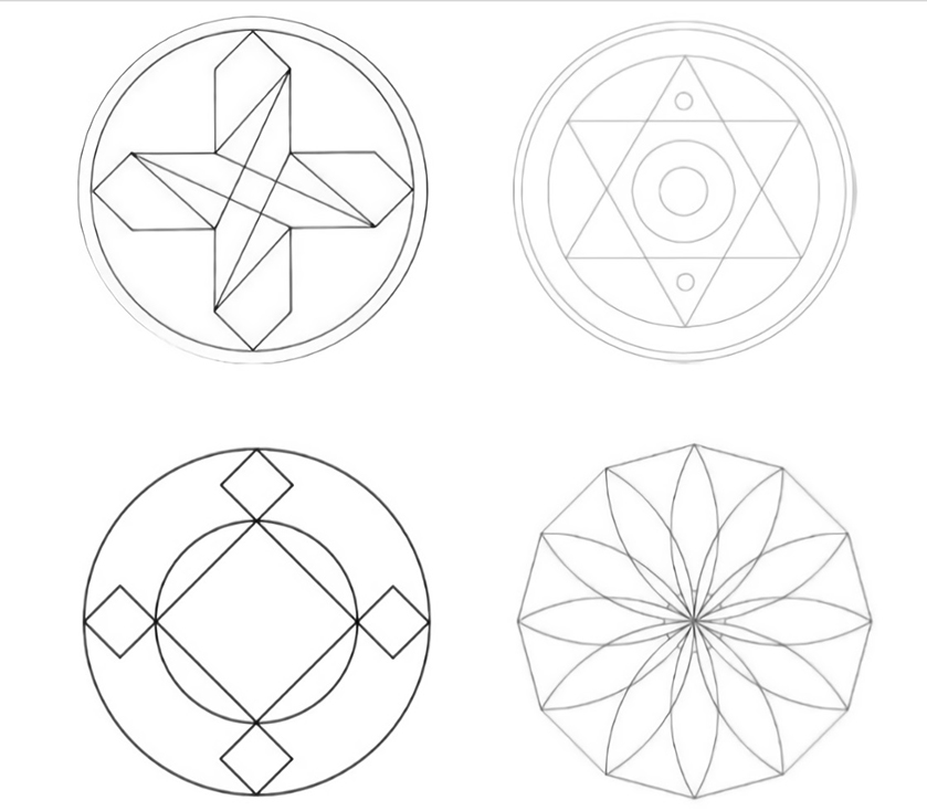 如果身边没有打印机,也可自创曼陀罗模板,再在模板基础上进行创作。创作模板的过程,其实也是放松和激发灵感的过程。在这里简单提供一种模板创作方法,以供大家产生更多的灵感: