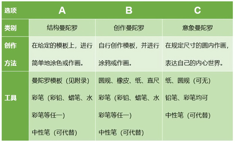 请依据您的情况或工具选择您想体验的曼陀罗类别: