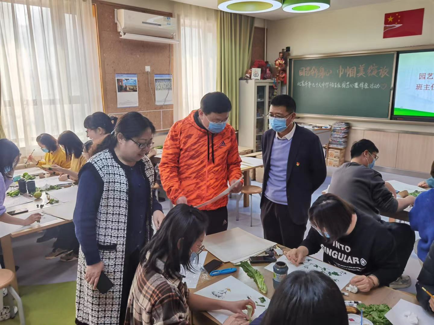 心理教师王丽英老师向班主任们讲解了园艺心理的涵义与作用,介绍了班主任们在教育学生过程中可以使用的园艺心理的方法,然后老师们亲手利用厨余蔬菜粘上颜料进行拓印创作体验。