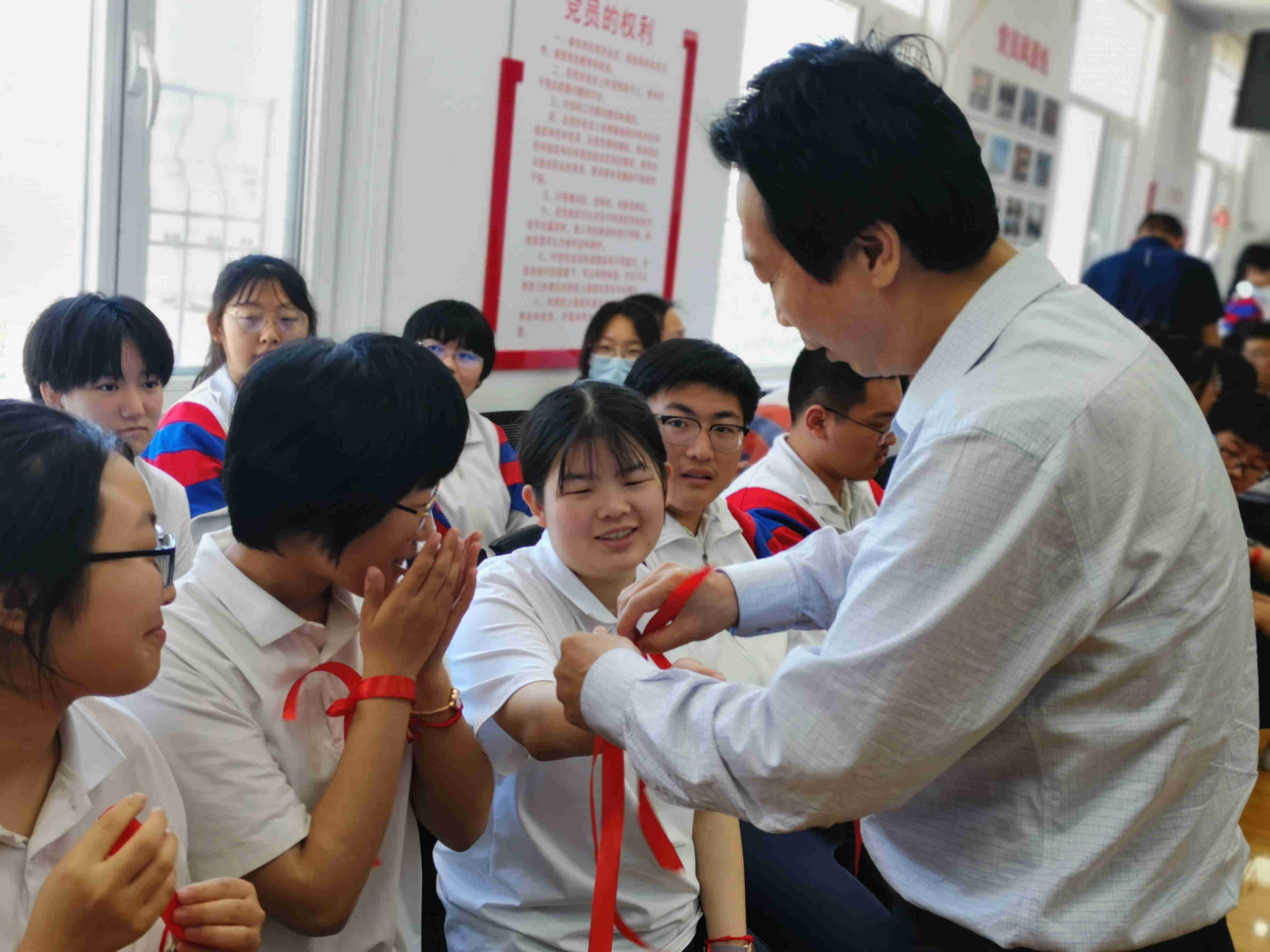 北京市宏志中学举行为高三学子温情送考活动,将一条条象征着美好祝福的红丝带系在了118名即将参加高考的学子手腕上。