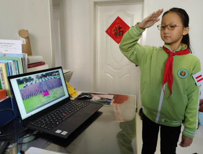 没有明亮的教室和熟悉的校园,居家的生活是相对枯燥的,大队委员们积极出谋划策,想用这样一次与众不的升旗仪式,告诉所有的同学,我们的生活充满了激情和音乐,更有阳光和欢乐;困难只是暂时的,坚持到底,胜利一定属于乐观的我们。