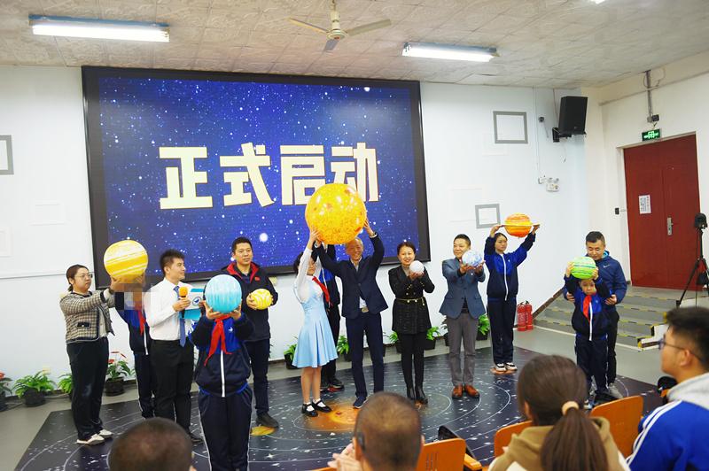 启动仪式最后,领导、来宾和师生、家长代表手持太阳系的星球模型上台,立于太阳系星球的相应位置,构成太阳星系图。王朋馆长宣布本次活动正式启动!