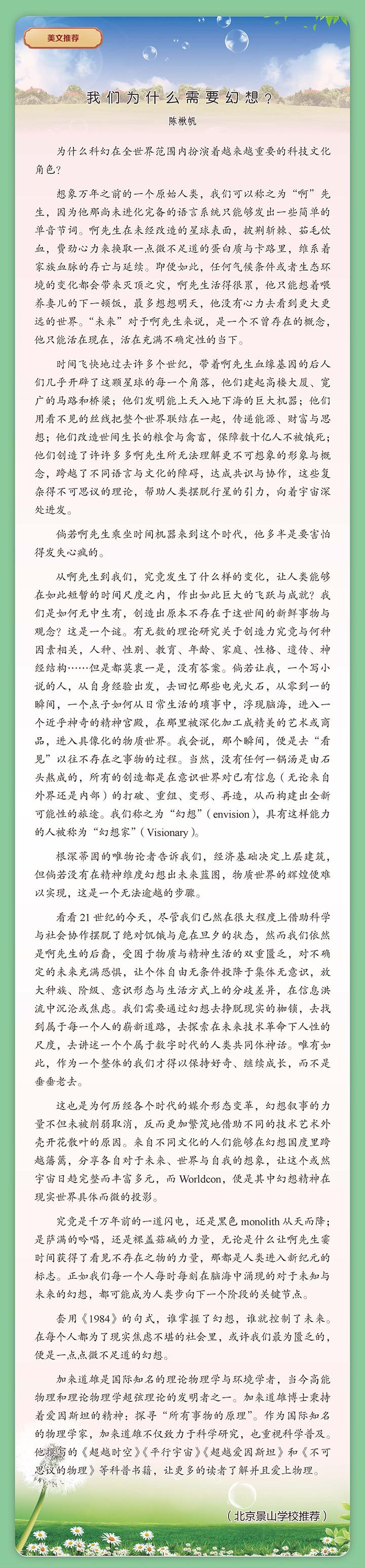 初中美文推荐:我们为什么需要幻想?——陈楸帆