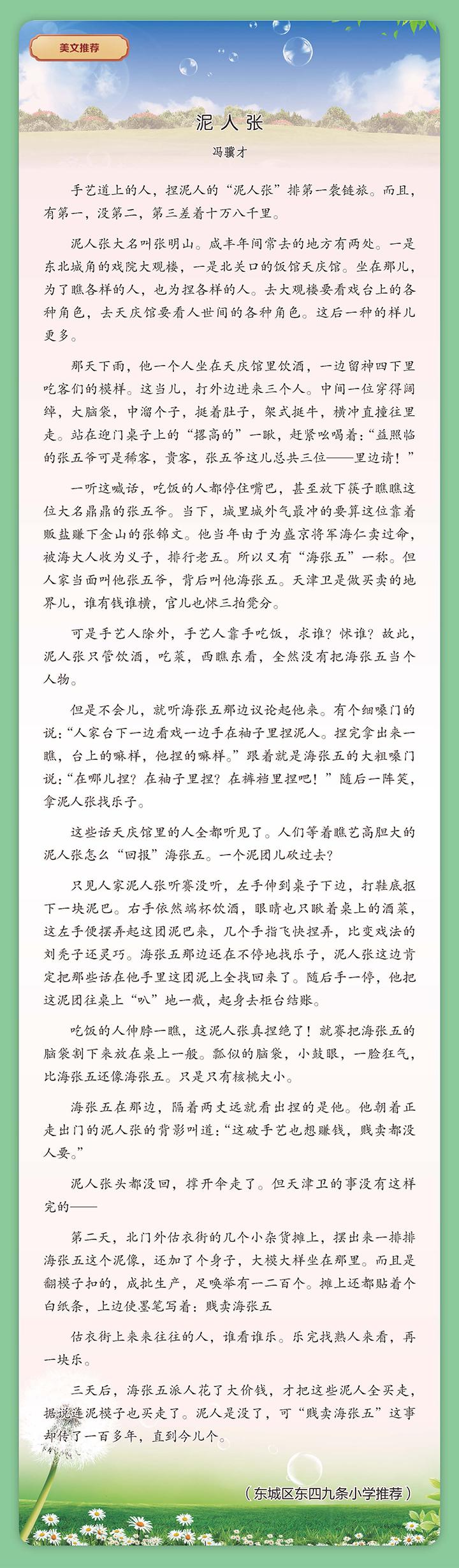 小学高年级美文推荐:泥人张——冯骥才