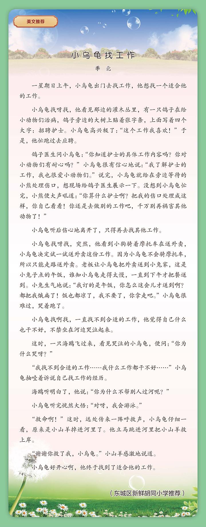 小学中年级美文推荐:小乌龟找工作——季北