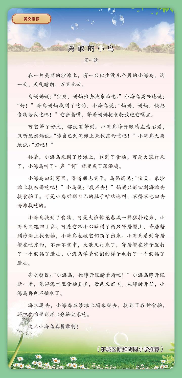 小学中年级美文推荐:勇敢的小鸟——王一达