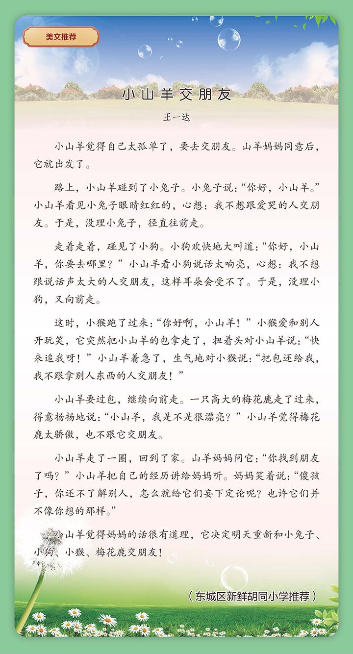 小学低年级美文推荐:小山羊交朋友——王一达