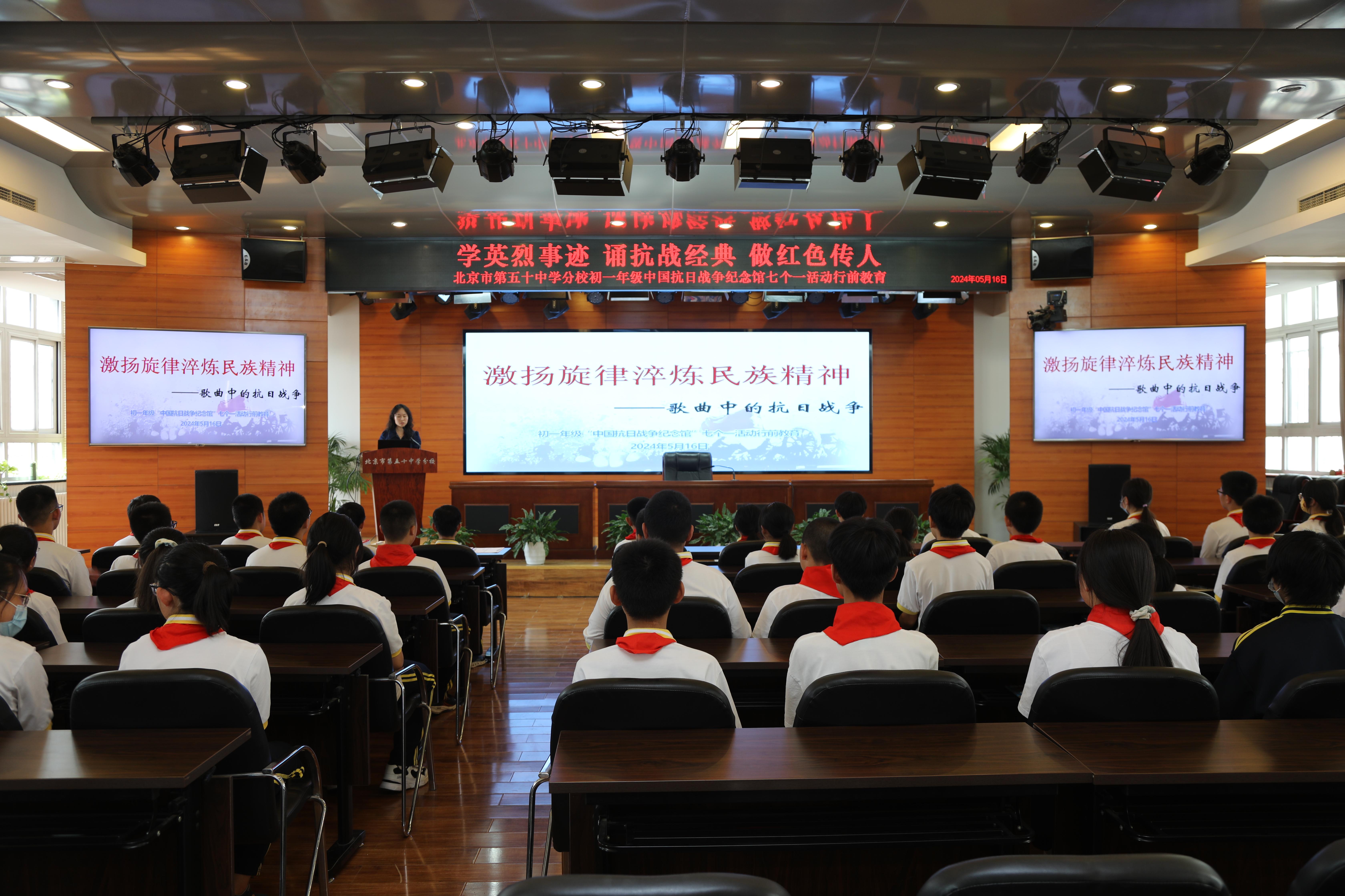 为加强团员和少先队员对民族历史的了解,激励同学们追寻红色基因,汲取奋进力量,弘扬以爱国主义为核心的伟大民族精神, 2024年5月17日,北京市第五十中学分校全体初一学生走进中国人民抗日战争纪念馆,参加了“学英烈事迹 诵抗战经典 做红色传人”为主题的北京市中小学生“七个一”主题活动。