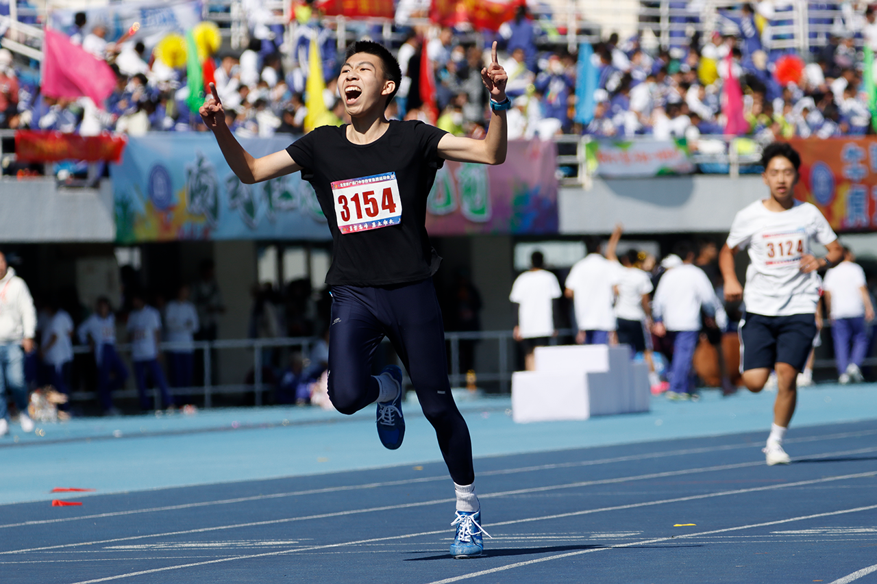 作品介绍:在北京市广渠门中学2023年运动会上,一名冲向终点的冠军选手展现出出胜利者的笑容,摄影师捕捉到这一珍贵的画面。运动健儿们用实际行动诠释着强国有我的铮铮誓言。