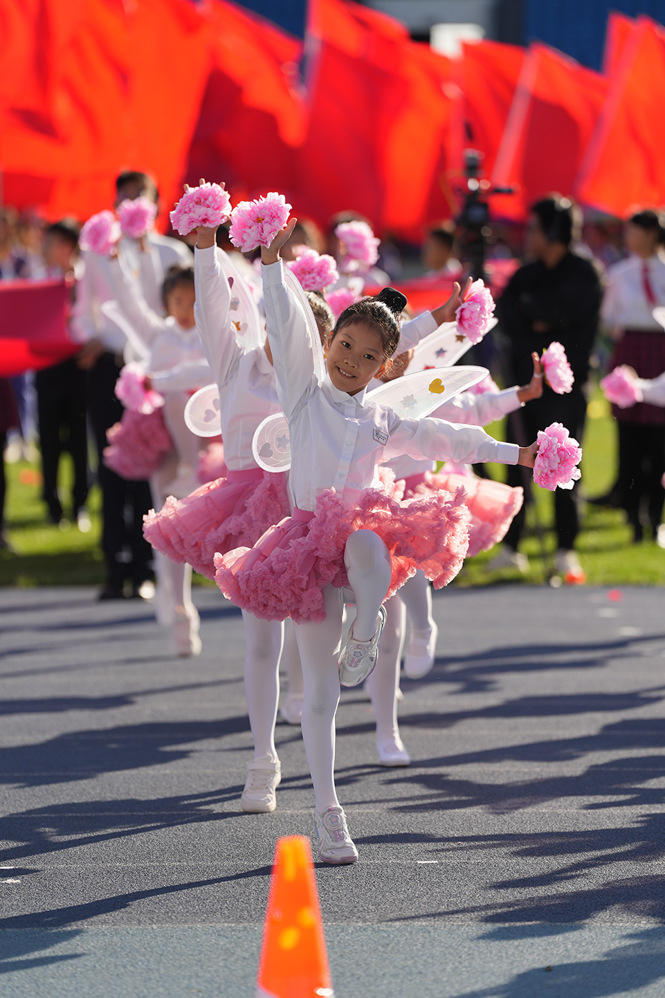 作品介绍:在北京市广渠门中学2023年运动会上,开幕式表演的小同学们开心表演时流露出了会心的微笑。