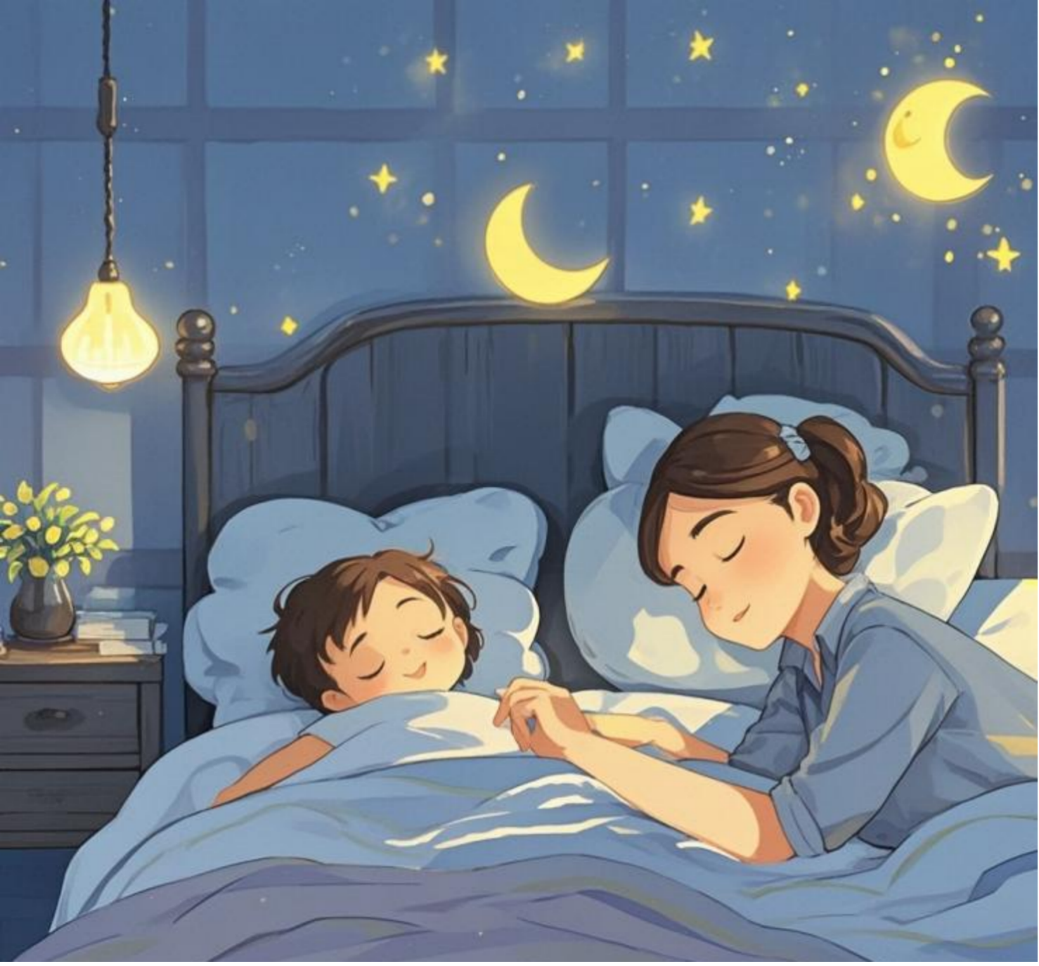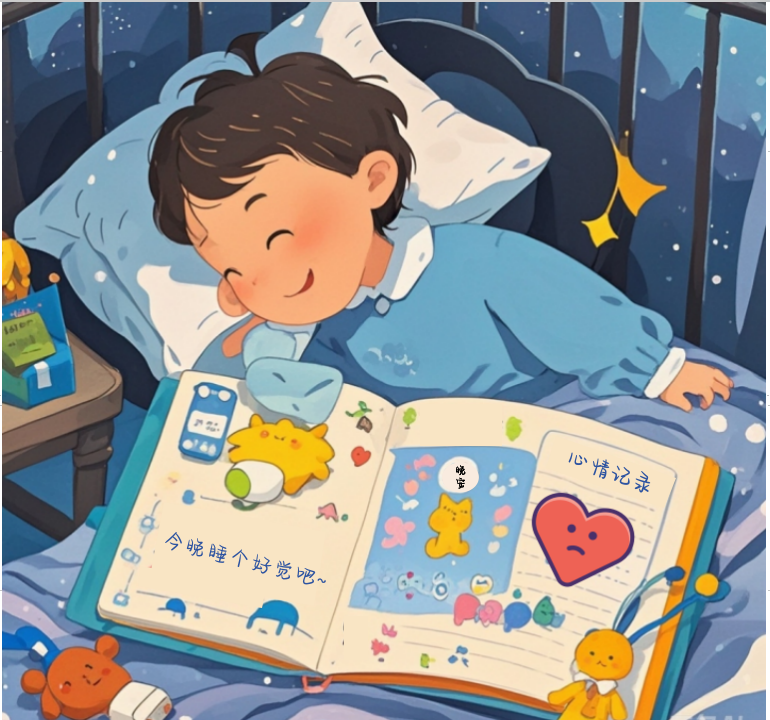 孩子难免由于“烦心事”出现难以入睡的情况,要关注孩子的睡前情绪。可以和孩子一起准备睡眠手账本,作为“情绪垃圾桶”,将睡前脑海中的思绪记录下来,给睡前的大脑开启“清空”操作。鼓励孩子尝试在每天睡前进行一些积极的心理练习,例如:积极心理暗示、科学的呼吸训练,学会动态调整自己的情绪,保证睡眠质量。