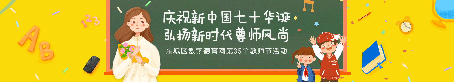 我们的祝福为辛勤园丁而来,祝愿老师们节日快乐,幸福美满!东城区数字德育网,开展“庆祝新中国七十华诞 弘扬新时代尊师风尚”主题教育活动,营造校园里浓厚的尊师重教氛围,深入落实立德树人根本任务。